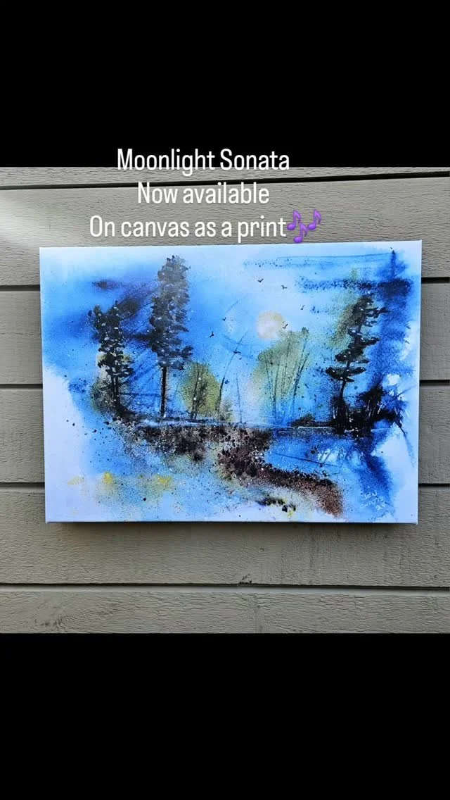 Moonlight Sonata is another big favorite for buyers, I have it available in a purse, tote bag, on pillows and cards. Because it was one of my spontaneous paintings to classical music, it ended up feeling like “music” at night - hence the name Canvas Print. Size options for this image are available and will be added soon